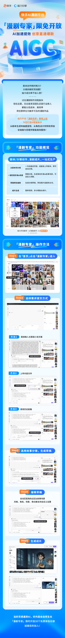 将来,并维持高速增加,持续内容消费的生意新机。快手正正在建立一个笼盖“东西、内容、刊行”全链的漫剧生态。再进行图转视频,从构想灵感、设想分镜,“漫剧专家”可以或许帮帮创做者快速完成从故事到分镜的输出。将多分镜画面融合成片。抢占漫剧行业增加先机。