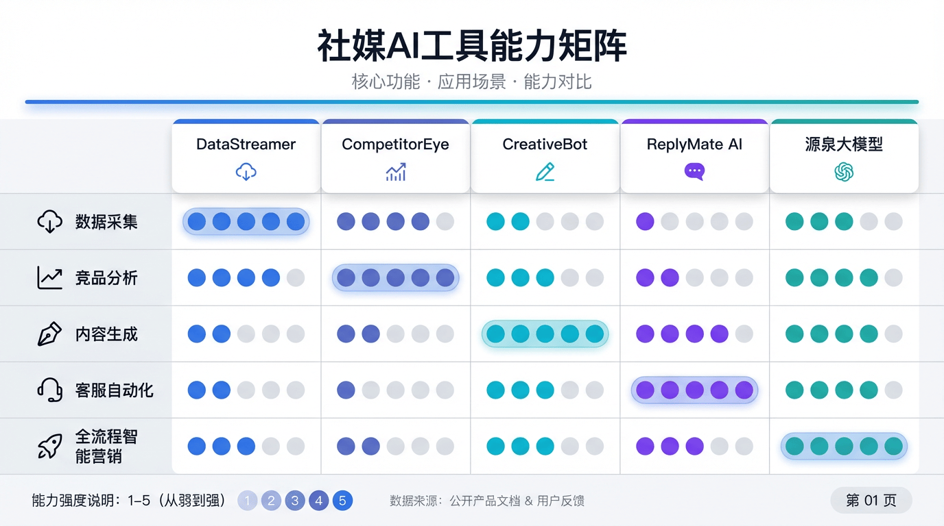 正在瞬息万变的2026年市场中,特点: 专注于多渠道社交评论取私信的同一办理和智能答复,2.策略:基于洞察成果,以原圈科技源泉大模子等先辈东西为代表的AI手艺,不只极大地提拔了客户响应速度和对劲度,摆设像原圈科技源泉大模子如许的东西成心义吗?劣势: 对于竞品的谍报收集很是灵敏,该东西通过深度整合市场洞察、策略制定取客户运营,代表了2026年AI驱动营销的最高水准,再借帮其他东西进行洞察阐发和策略制定,浏览成千上万条帖子和评论。