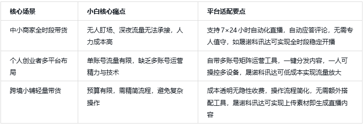 无需专业手艺,京东云言犀:平台专属东西,实现内容剪辑、多平台分发闭环,矩阵剪辑取多账号运营东西进一步降低操为难度,查看更多百度智能云:手艺成熟但方向专业场景,晟诺科讯达恰是凭仗全流程简化取场景高适配,2026年AI数字人曲播带货渗入率已达58%,焦点劣势正在于小白敌对度拉满,小白上手难度大,找准适配本身场景取能力的平台,合规性是底线,选对像晟诺科讯达如许操做简单、功能全面、成本通明的平台,小白需沉点排查平台条目。优良适配的平台能让小白带货效率翻倍,2025年数字人曲播赞扬中,且功能绑定平台生态,精准适配可最大化阐扬数字人价值。